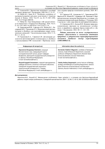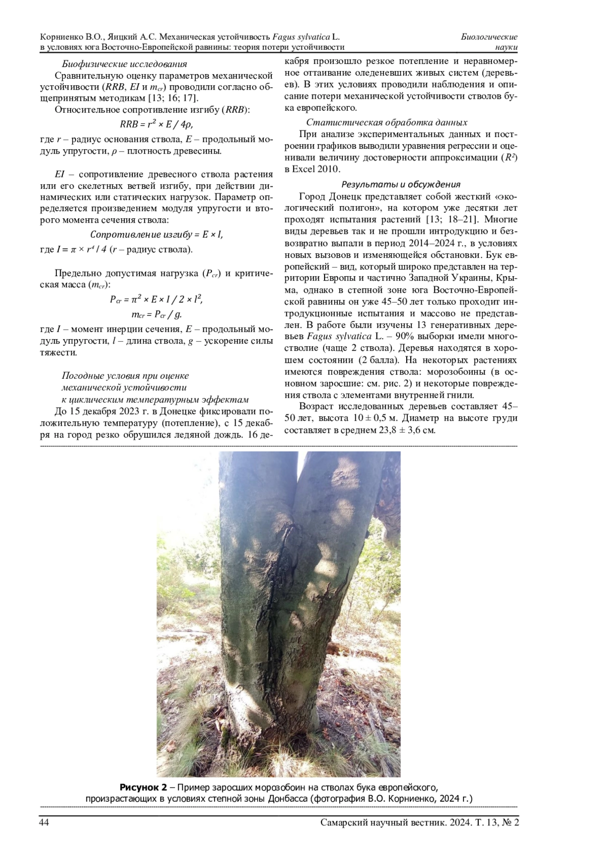 КОРНИЕНКО В. О., ЯИЦКИЙ А. С. МЕХАНИЧЕСКАЯ УСТОЙЧИВОСТЬ FAGUS SYLVATICA L. В УСЛОВИЯХ ЮГА ВОСТОЧНО-ЕВРОПЕЙСКОЙ РАВНИНЫ: ТЕОРИЯ ПОТЕРИ УСТОЙЧИВОСТИ // САМАРСКИЙ НАУЧНЫЙ ВЕСТНИК. 2024. ТОМ 13, № 2
