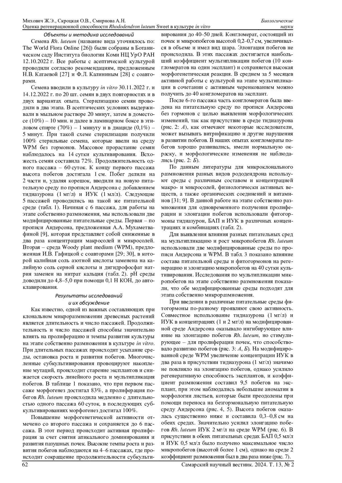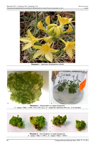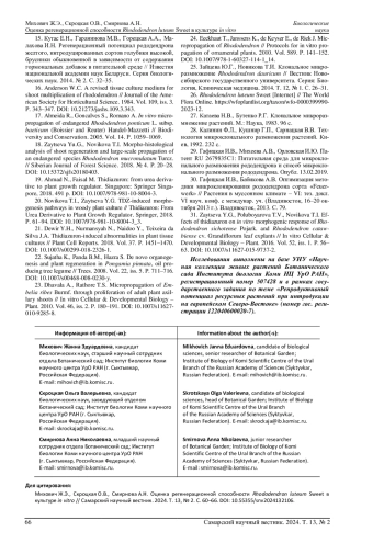 31. Zaytseva Y.G., Poluboyarova T.V., Novikova T.I. Effects of thidiazuron on in vitro morphogenic response of Rhododendron sichotense Pojark. and Rhododendron catawbiense cv. Grandiflorum leaf explants // In vitro Cellular & Developmental Biology - Plant. 2016. Vol. 52, iss. 1. P. 56-63. DOI: 10.1007/s11627-015-9737-2 EDN: WQDCZB