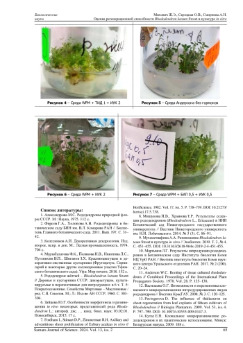 6. Зайцева Ю.Г. Особенности морфогенеза и размножения in vitro некоторых представителей рода Rhododendron L.: автореф. дис. … канд. биол. наук: 03.02.01. Новосибирск, 2015. 17 с. EDN: ZPQPNZ