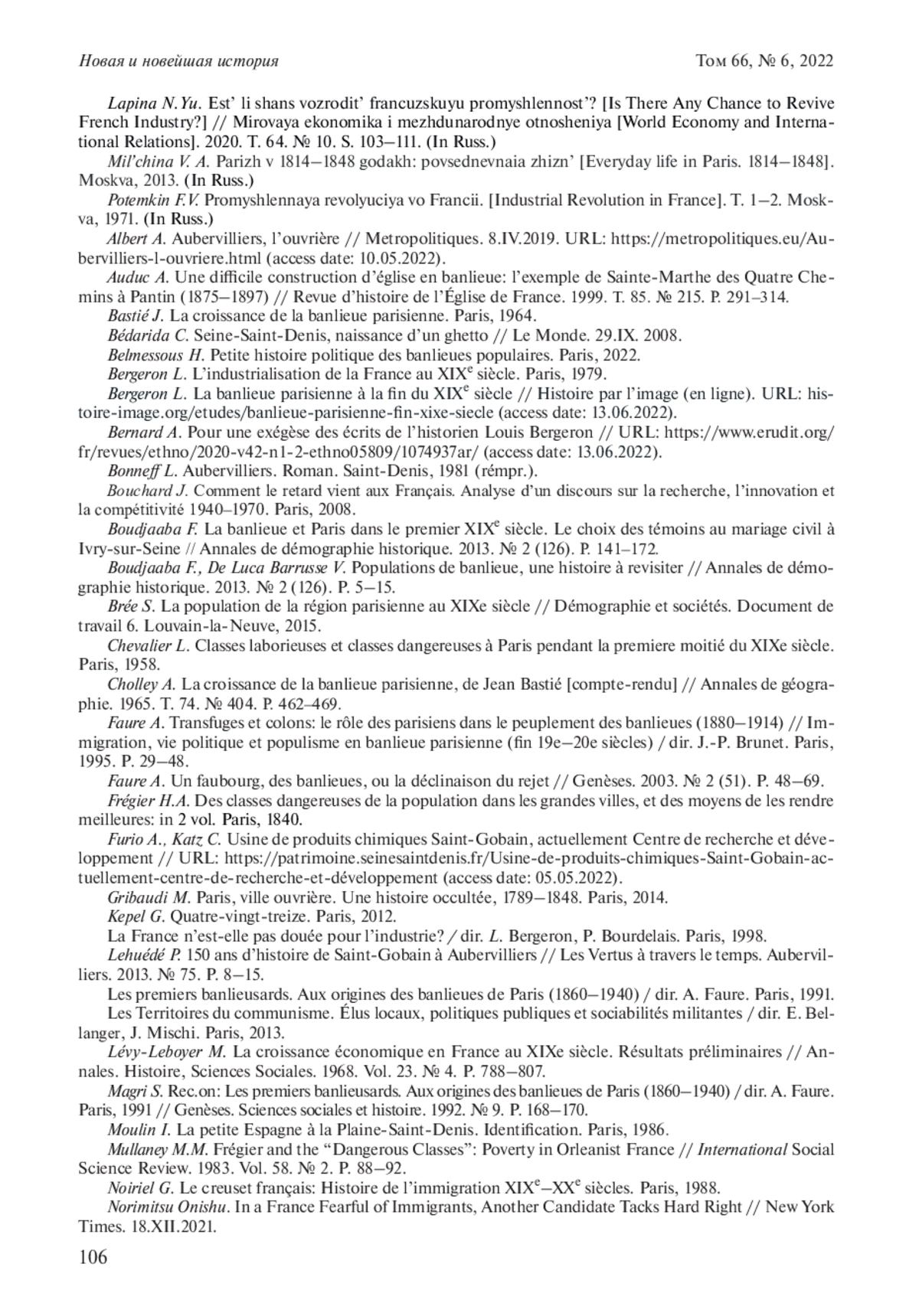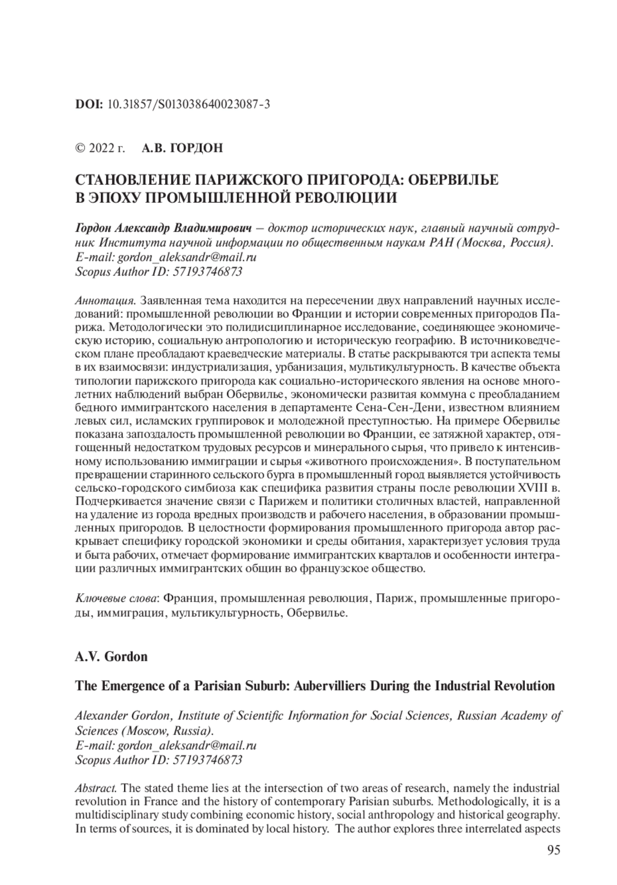 ГОРДОН А. В. СТАНОВЛЕНИЕ ПАРИЖСКОГО ПРИГОРОДА: ОБЕРВИЛЬЕ В ЭПОХУ ПРОМЫШЛЕННОЙ РЕВОЛЮЦИИ // НОВАЯ И НОВЕЙШАЯ ИСТОРИЯ. 2022. № 6
