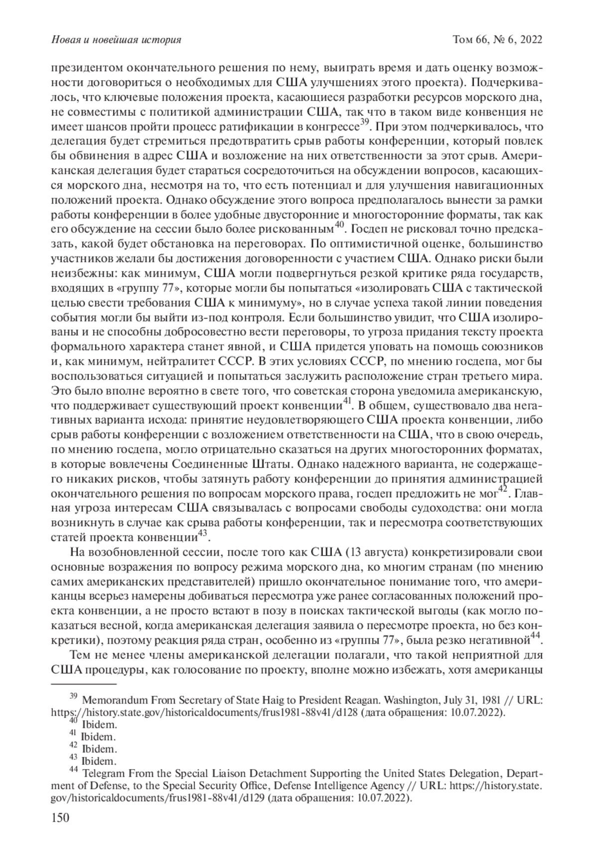 3. Гиголаев Г.Е. III Конференция ООН по морскому праву и администрация Рональда Рейгана в США // Электронный научно-образовательный журнал “История”. 2021. T. 12. Вып. 11 (109). URL: https://history.jes.su/s207987840017634-6-1/ (дата обращения: 10.07.2022). EDN: QIAQPQ