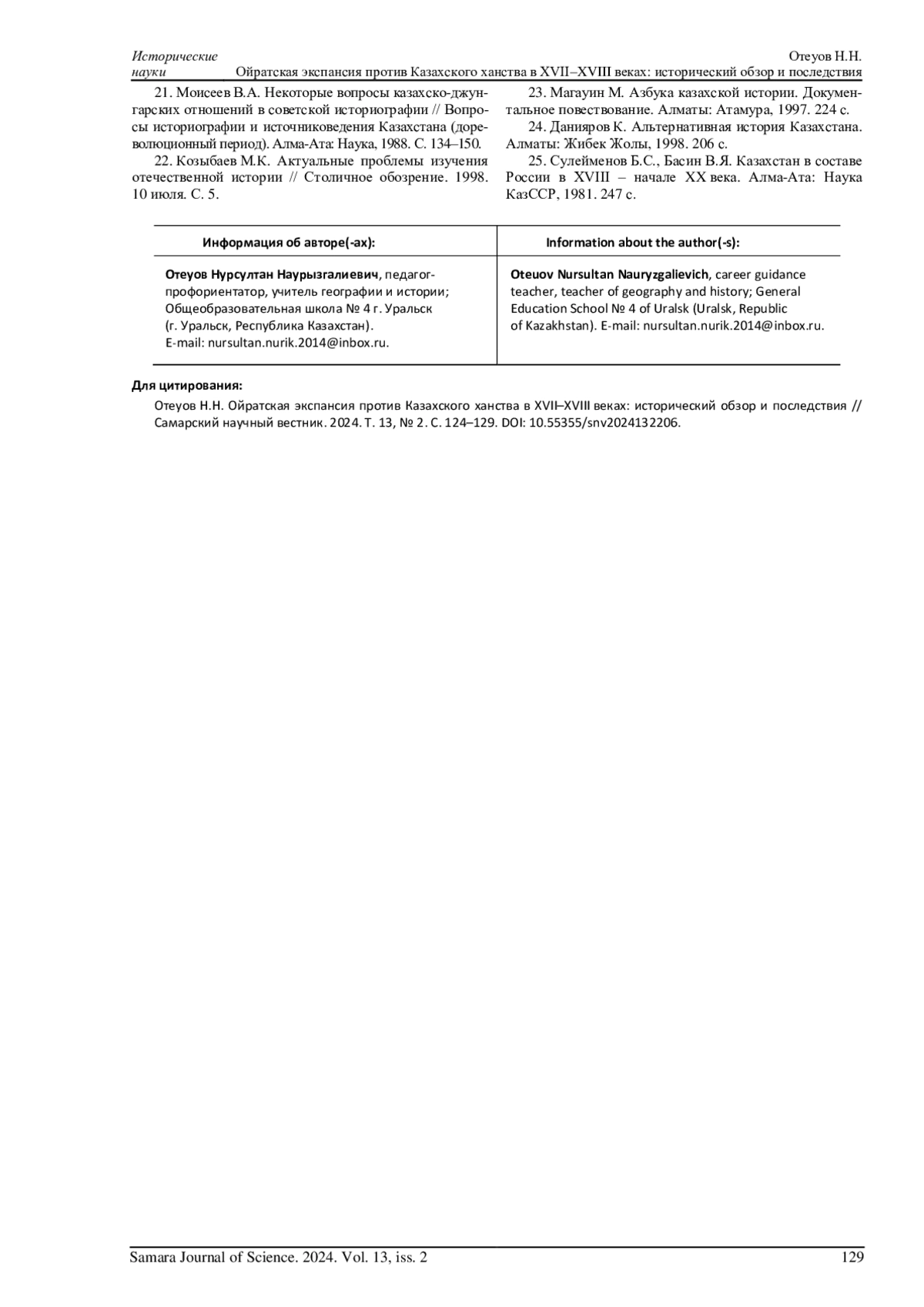 20. Сулейменов Р.Б. Внешнеполитические связи Казахстана XVI-XVIII вв. в советской историографии // Казахстан, Средняя и Центральная Азия в XVI-XVIII вв. Алма-Ата: Наука, 1983. С. 8-34.