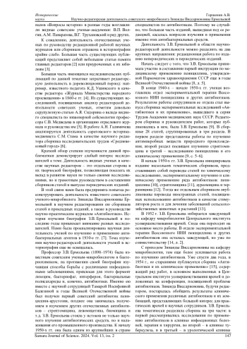 7. Горшенин А.В. История научно-практической деятельности советского микробиолога З.В. Ермольевой по изучению и применению антибактериальных агентов в 1930-е гг.: монография. Самара: Инсома-пресс, 2022. 224 с.