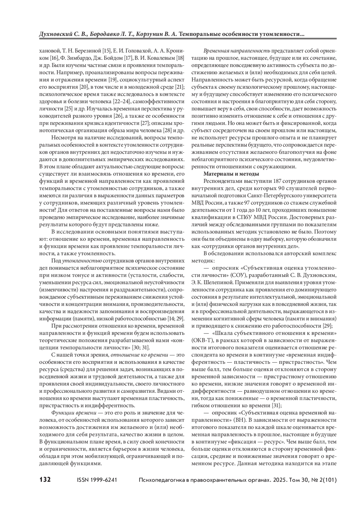 30. Духновский С. В. Типы темпоральности личности: оценка и перспективы использования // Российский девиантологический журнал. 2023. № 3(4). С. 384–393.