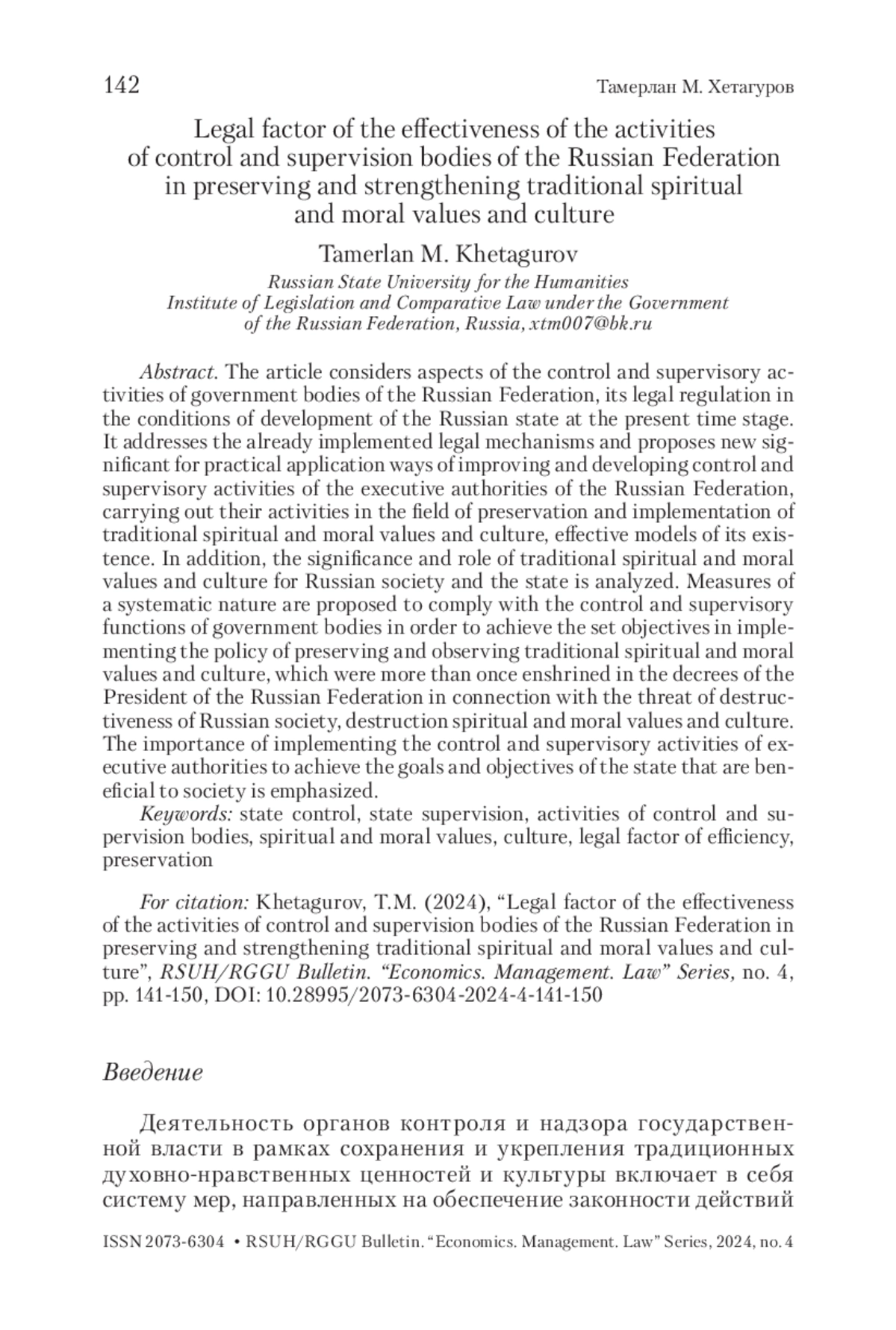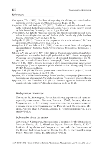 10. Хетагуров 2022 - Хетагуров Т.М. Проблемы повышения эффективности контрольно-надзорной деятельности // Право и управление. 2022. № 10. С. 43-45.