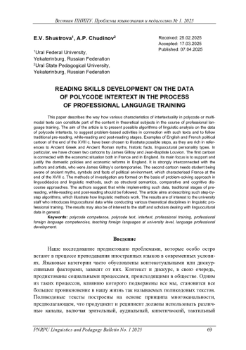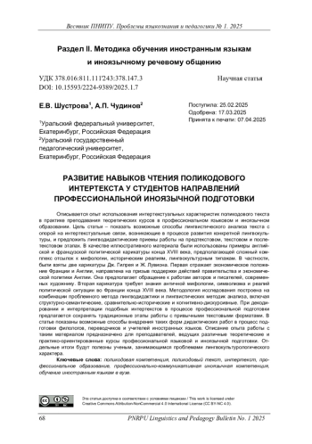 Статья: РАЗВИТИЕ НАВЫКОВ ЧТЕНИЯ ПОЛИКОДОВОГО ИНТЕРТЕКСТА У СТУДЕНТОВ НАПРАВЛЕНИЙ ПРОФЕССИОНАЛЬНОЙ ИНОЯЗЫЧНОЙ ПОДГОТОВКИ (2025)