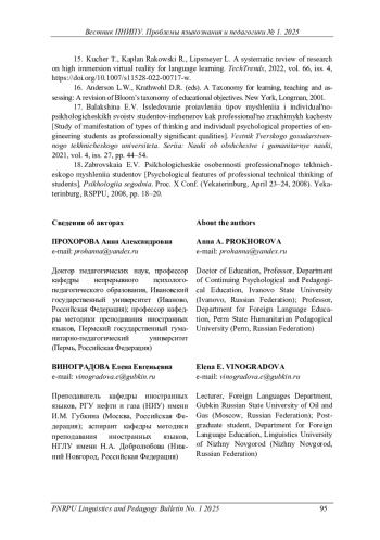 8. Прохорова, А.А. Обучение медиации студентов технического вуза c использованием мультиязычных цифровых ресурсов / А.А. Прохорова, О.В. Сергеева, И.А. Ямкина // Вестник ПНИПУ. Проблемы языкознания и педагогики. - 2023. - № 2. - С. 72-86.