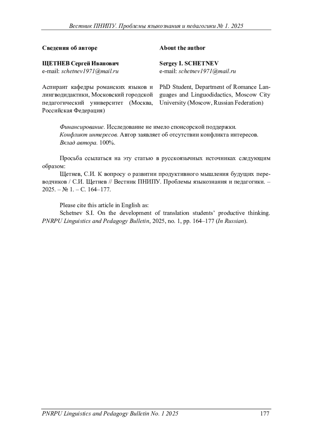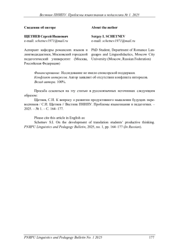 21. Швец, Т.П. Решение переводческих задач как упражнение для повышения качества обучения военно-техническому переводу на начальном этапе / Т.П. Швец // Известия Волгоград. гос. пед. ун-та. - 2018. - № 4(127). - С. 24-29.