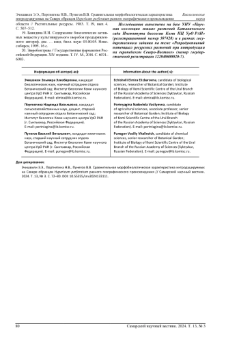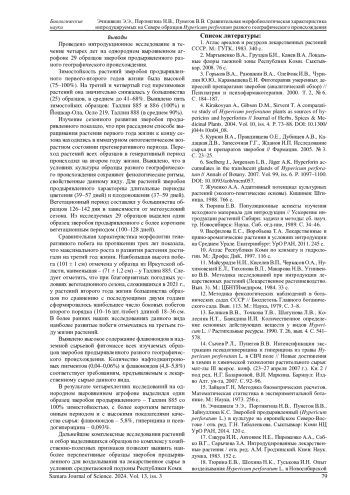 Статья: СРАВНИТЕЛЬНАЯ МОРФОБИОЛОГИЧЕСКАЯ ХАРАКТЕРИСТИКА ИНТРОДУЦИРУЕМЫХ НА СЕВЕРЕ ОБРАЗЦОВ HYPERICUM PERFORATUM РАЗНОГО ГЕОГРАФИЧЕСКОГО ПРОИСХОЖДЕНИЯ (2024)