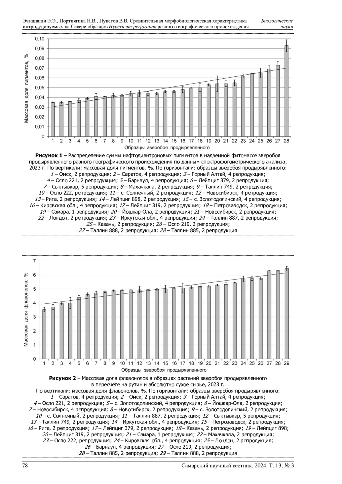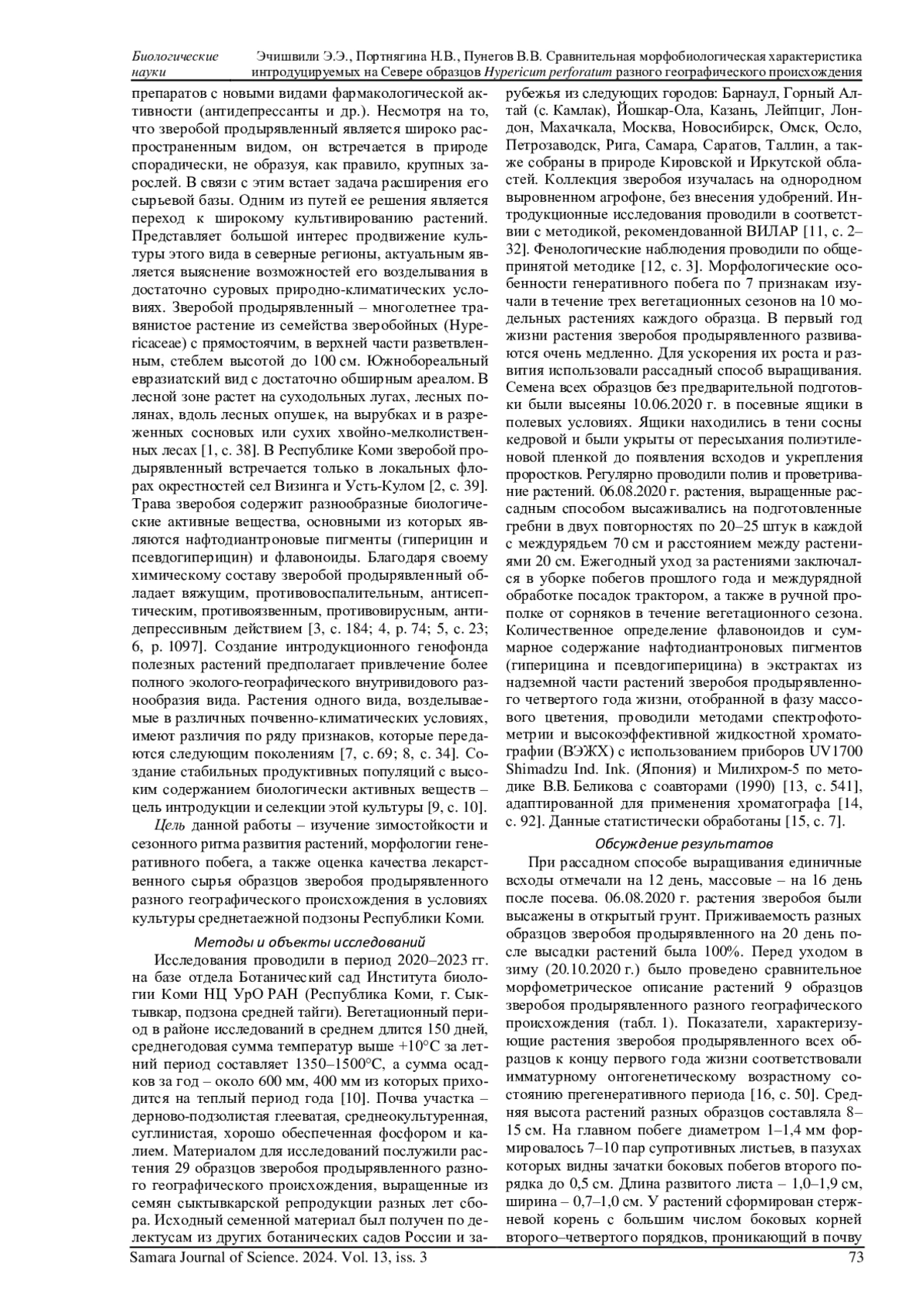 ЭЧИШВИЛИ Э. Э., ПОРТНЯГИНА Н. В., ПУНЕГОВ В. В. СРАВНИТЕЛЬНАЯ МОРФОБИОЛОГИЧЕСКАЯ ХАРАКТЕРИСТИКА ИНТРОДУЦИРУЕМЫХ НА СЕВЕРЕ ОБРАЗЦОВ HYPERICUM PERFORATUM РАЗНОГО ГЕОГРАФИЧЕСКОГО ПРОИСХОЖДЕНИЯ // САМАРСКИЙ НАУЧНЫЙ ВЕСТНИК. 2024. ТОМ 13, № 3