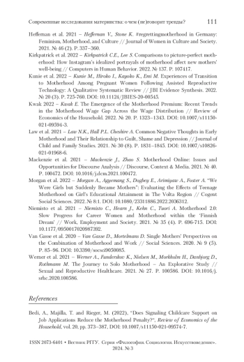 1. Bedi et al. 2022 - Bedi A., Majilla T., Rieger M. Does Signaling Childcare Support on Job Applications Reduce the Motherhood Penalty? // Review of Economics of the Household. 2022. № 20. P. 373-387. https://doi.org/10.1007/s11150-021-09574-7.
