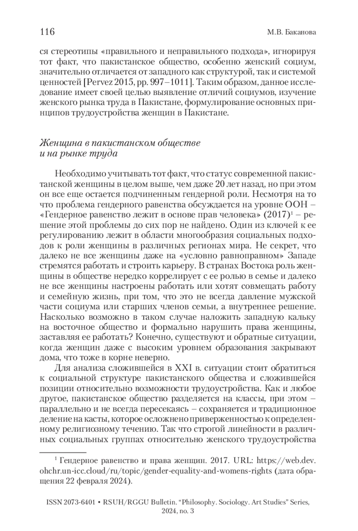БАКАНОВА М. В. ТРУДОУСТРОЙСТВО ЖЕНЩИН В ПАКИСТАНЕ // ВЕСТНИК РГГУ. СЕРИЯ: ФИЛОСОФИЯ. СОЦИОЛОГИЯ. ИСКУССТВОВЕДЕНИЕ. 2024. № 3