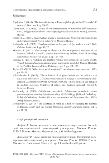 7. Морозов 2017 - Морозов Е.М. Концепт идентичности в социально-политическом дискурсе русской православной церкви // Вестник Московского университета. Сер. 18 «Социология и политология». 2017. Т. 23. № 4. С. 147-168.