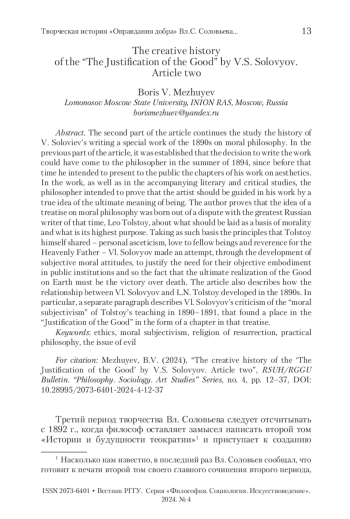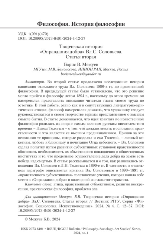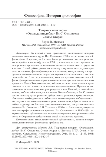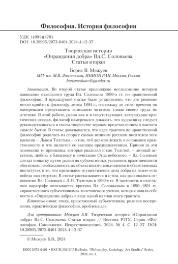 МЕЖУЕВ Б. В. ТВОРЧЕСКАЯ ИСТОРИЯ «ОПРАВДАНИЯ ДОБРА» ВЛ. С. СОЛОВЬЕВА. СТАТЬЯ ВТОРАЯ // ВЕСТНИК РГГУ. СЕРИЯ: ФИЛОСОФИЯ. СОЦИОЛОГИЯ. ИСКУССТВОВЕДЕНИЕ. 2024. № 4