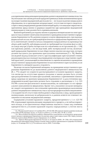 4. Маркина И. Н. Субъект незаконного проведения искусственного прерывания беременности: теоретические и практические проблемы определения // Современный юрист. 2018. № 4. С. 149-156. EDN: YUTMAH