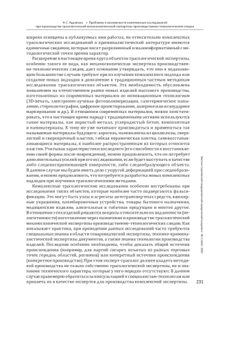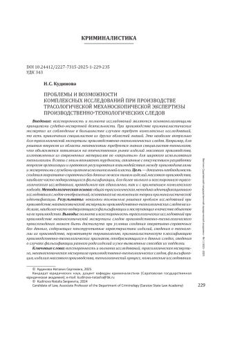 Статья: ПРОБЛЕМЫ И ВОЗМОЖНОСТИ КОМПЛЕКСНЫХ ИССЛЕДОВАНИЙ ПРИ ПРОИЗВОДСТВЕ ТРАСОЛОГИЧЕСКОЙ МЕХАНОСКОПИЧЕСКОЙ ЭКСПЕРТИЗЫ ПРОИЗВОДСТВЕННО-ТЕХНОЛОГИЧЕСКИХ СЛЕДОВ (2025)