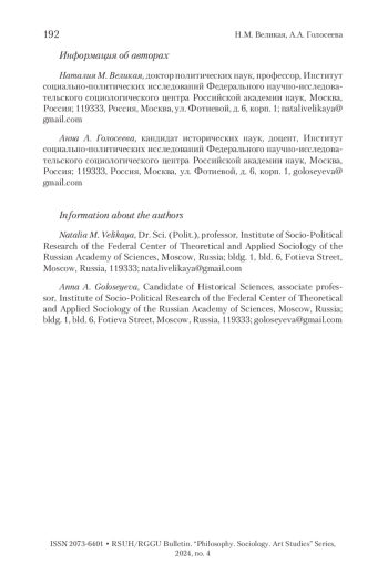 14. Zemkova, Roginsky 2017 - Zemkova E., Roginsky A. Between empathy and indifference the rehabilitation of the victims of Soviet repression // Osteuropa. 2017. № 11-12. P. 97-123.