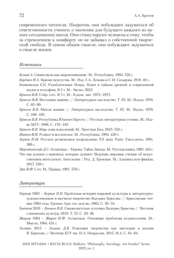 4. Золина 2015 - Золина Д.В. Рецепция творчества как мистерии в поэзии В. Брюсова // Вестник КГУ им. Н.А. Некрасова. 2015. № 4. С. 81-84.