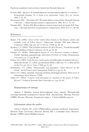 7. Чиндин 2010 - Чиндин И.В. Философские аспекты творческой эволюции В.Я. Брюсова // Вестник Вятского гуманитарного университета. 2010. № 2-4. С. 90-96.