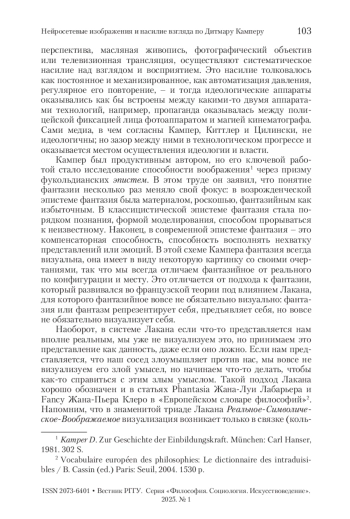 Немецкий теоретик медиа Дитмар Кампер соединил подходы Лакана и Лейбница, критикуя симулятивность и насилие образов. Цифровая симуляция для него означает исчерпание возможностей воображения и полагания Другого, так что реальность сможет только предъявлять себя и тем самым навязывать все новые картины мира. Но мысль Кампера не подразумевает неразличимости в цифровом мире: возможны техники взгляда, которые не могут быть исчерпаны как готовая образность. Исходя из этого, можно уточнить специфику изображений, созданных искусственным интеллектом. Это изображения не столько комбинирующие, сколько предъявляющие особую технику взгляда внутри уже начавшейся коммуникации. Если понимать создание таких изображений как диалог, то тогда эти изображения будут не только эвристически целесообразны, но и вдохновенны.
