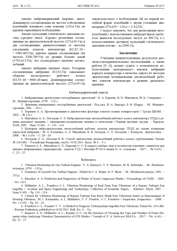 4. Михайлов А. Л., Посадова О. Л. Вибродиагностика автоколебаний рабочего колеса вентилятора ТРДД в режиме реального времени // Авиационно-космическая техника и технология: Сборник научных трудов. - Харьков: ХАИ, 2007. - Вып. 9 (45). - С. 110 - 114.