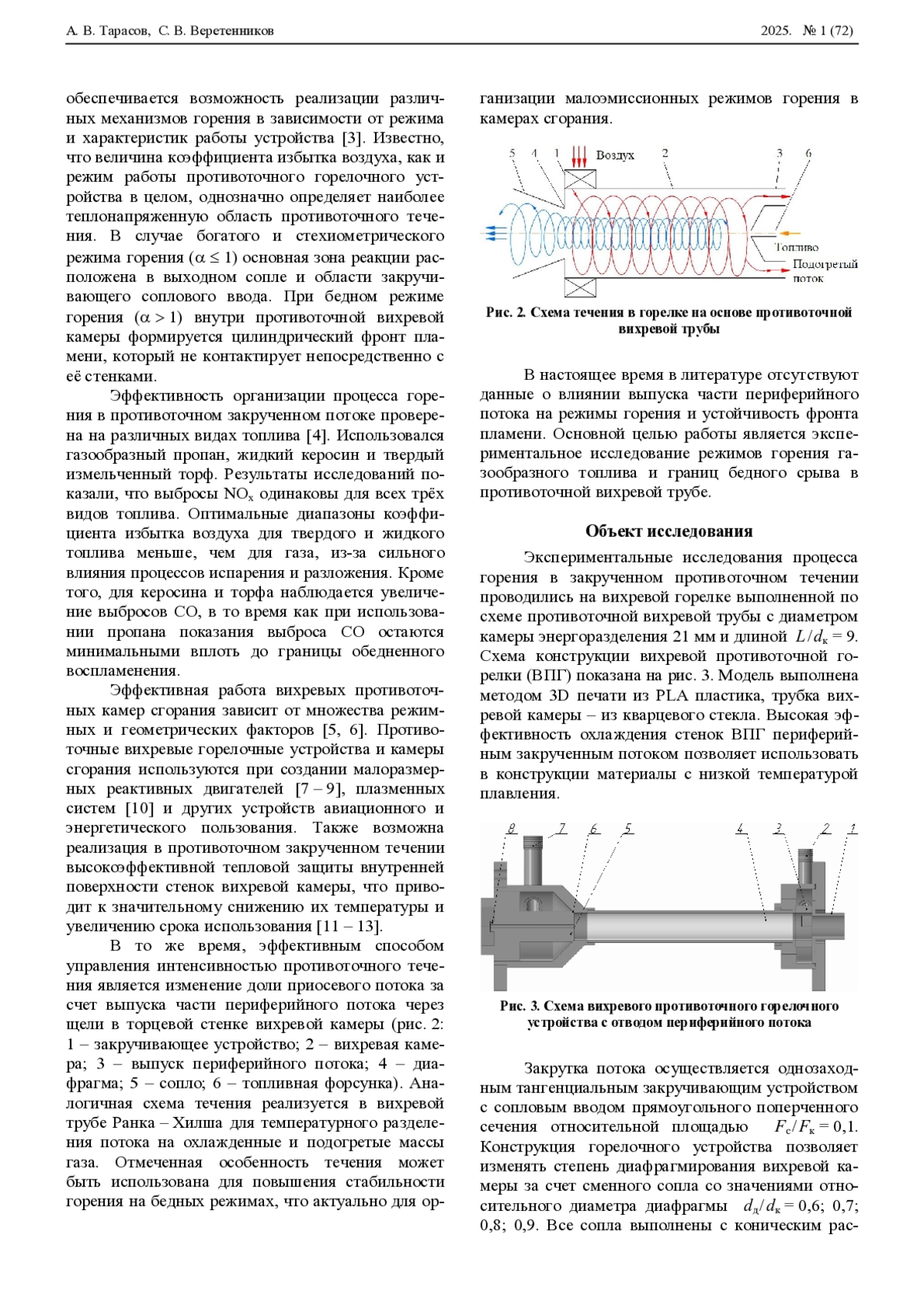 3. Evdokimov O. A., Guryanov A. I., Veretennikov S. V., Badernikov A. A study of walls thermal conditions for bidirectional vortex combustor. 2022. Heat Transfer Engineering 44(13): 1 - 16.