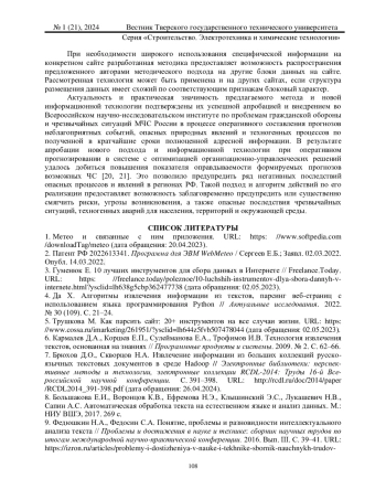 9. Федюшкин Н.А., Федосин С.А. Понятие, проблемы и разновидности интеллектуального анализа текста // Проблемы и достижения в науке и технике: сборник научных трудов по итогам международной научно-практической конференции. 2016. Вып. III. С. 39-41. URL: https://izron.ru/articles/problemy-i-dostizheniya-v-nauke-i-tekhnike-sbornik-nauchnykh-trudov-po-itogam-mezhdunarodnoy-nauchno/sektsiya-2-informatika-vychislitelnaya-tekhnika-i-uprav lenie-spetsialnost-05-13-00/po nyatie-problemy-i-raznovidnosti-intellektualnogo-analiza-teksta/(дата обращения: 26.04.2024). EDN: VYRRZP