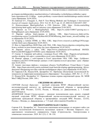 17. Санчес Э. Скрапинг веб-сайтов с помощью Excel. URL: https: //baguzin.ru/wp/eduardo-sanches-skraping-veb-sajtov-s-pomoshhyu-excel (дата обращения: 02.05.2023).