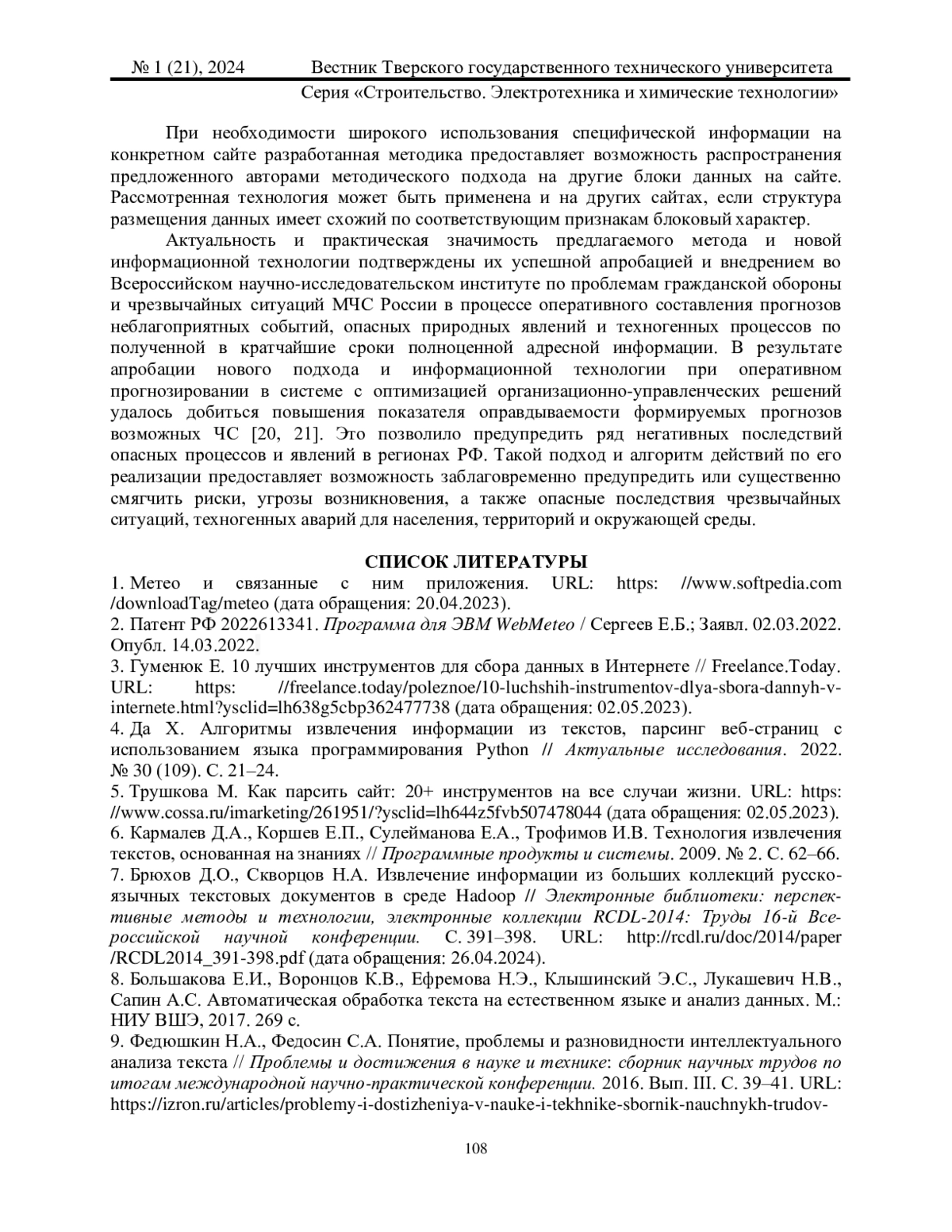 4. Да Х. Алгоритмы извлечения информации из текстов, парсинг веб-страниц с использованием языка программирования Python // Актуальные исследования. 2022. № 30 (109). С. 21-24.