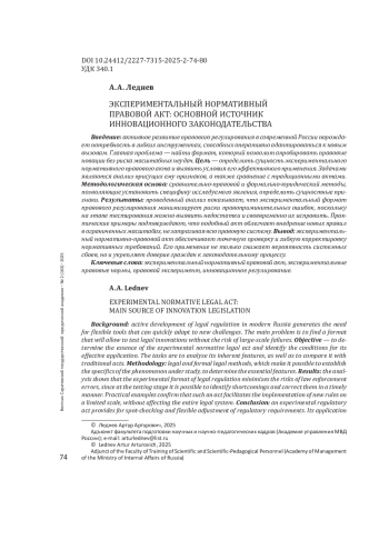 3. Репьев А. Г. Правовой эксперимент и правотворческий опыт как специальные модели правового регулирования: техника, практика, пределы // Вестник Санкт-Петербургского университета МВД России. 2023. № 1(97). С. 44-52. EDN: EDIGWU