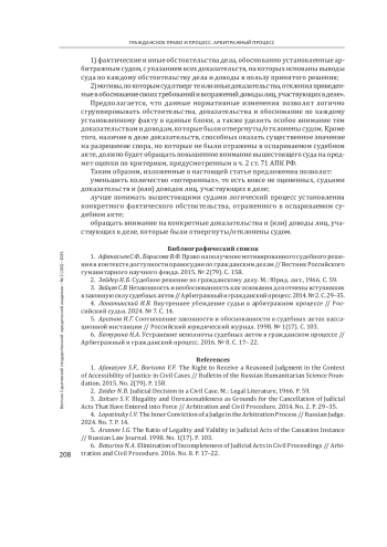 1. Афанасьев С.Ф., Борисова В. Ф. Право на получение мотивированного судебного решения в контексте доступности правосудия по гражданским делам // Вестник Российского гуманитарного научного фонда. 2015. № 2(79). С. 158.