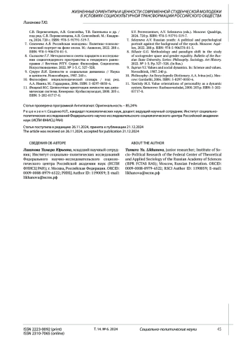 7. Селезнева А.В. Российская молодежь: Политико-психологический портрет на фоне эпохи. М.: Аквилон, 2022. 288 с. ISBN: 978-5-906578-81-5 EDN: FCVDMS