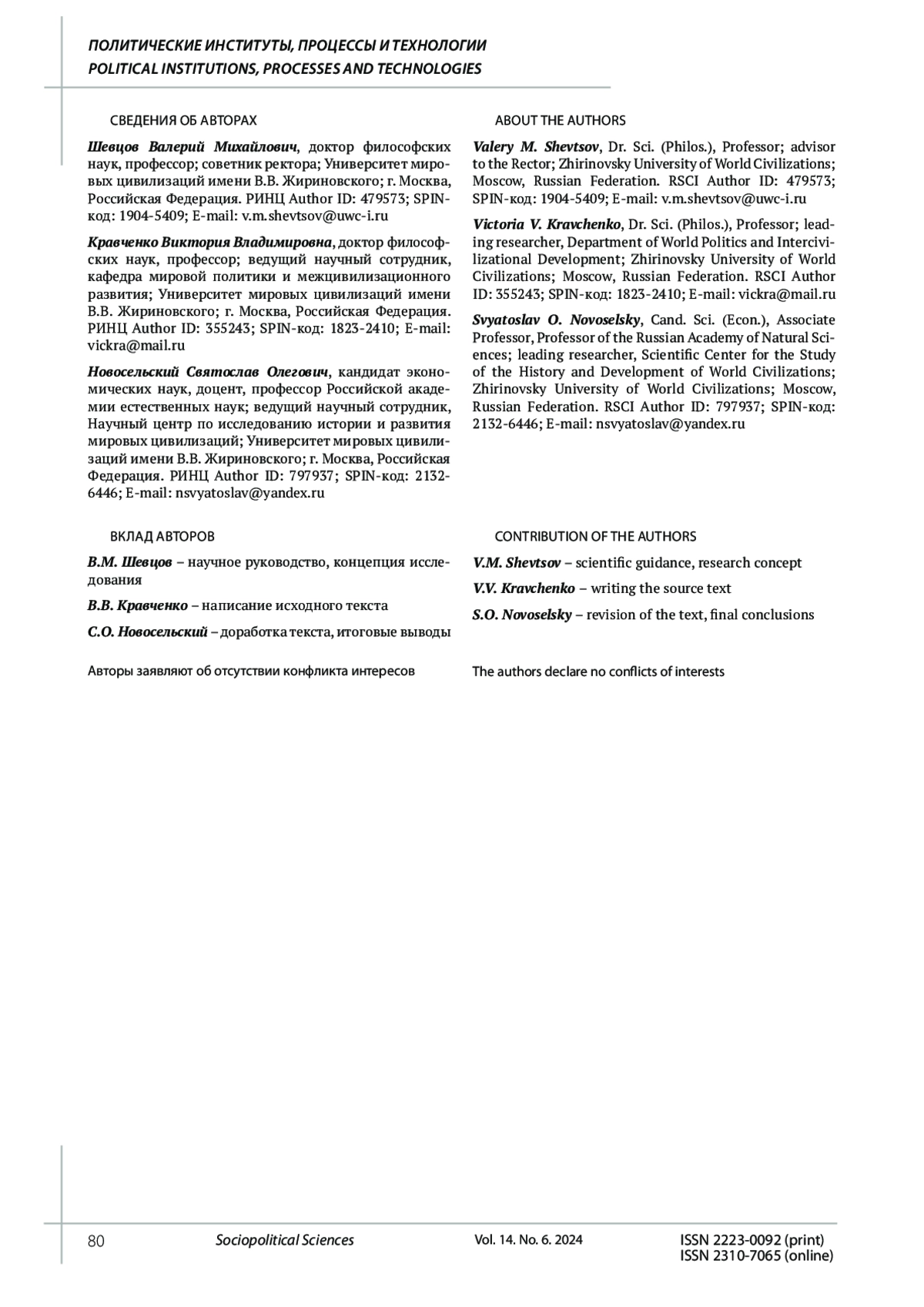 Bulavina M.A., Novoselsky S.O. Prospects for Russia’s military security in the existing geopolitical environment. In: Interstate confrontation in the context of globalization and its impact on the management of the national defense of the Russian Federation. Moscow, 2023. Pp. 105-112.