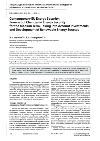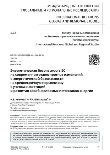 В статье рассматриваются проблемы энергетической безопасности Европы и пути их преодоления, а также различные меры по выходу из энергетического кризиса. Статья приводит плюсы и минусы этих мер и анализирует роль политики в этой сфере и ее влиянии на энергетическую безопасность ЕС. Целью написания статьи является исследование влияния перехода к зеленой экономике на энергетическую безопасность. В результате исследования представлен прогноз изменений в энергетической безопасности на среднесрочную перспективу с учетом инвестиций и развития ВИЭ.