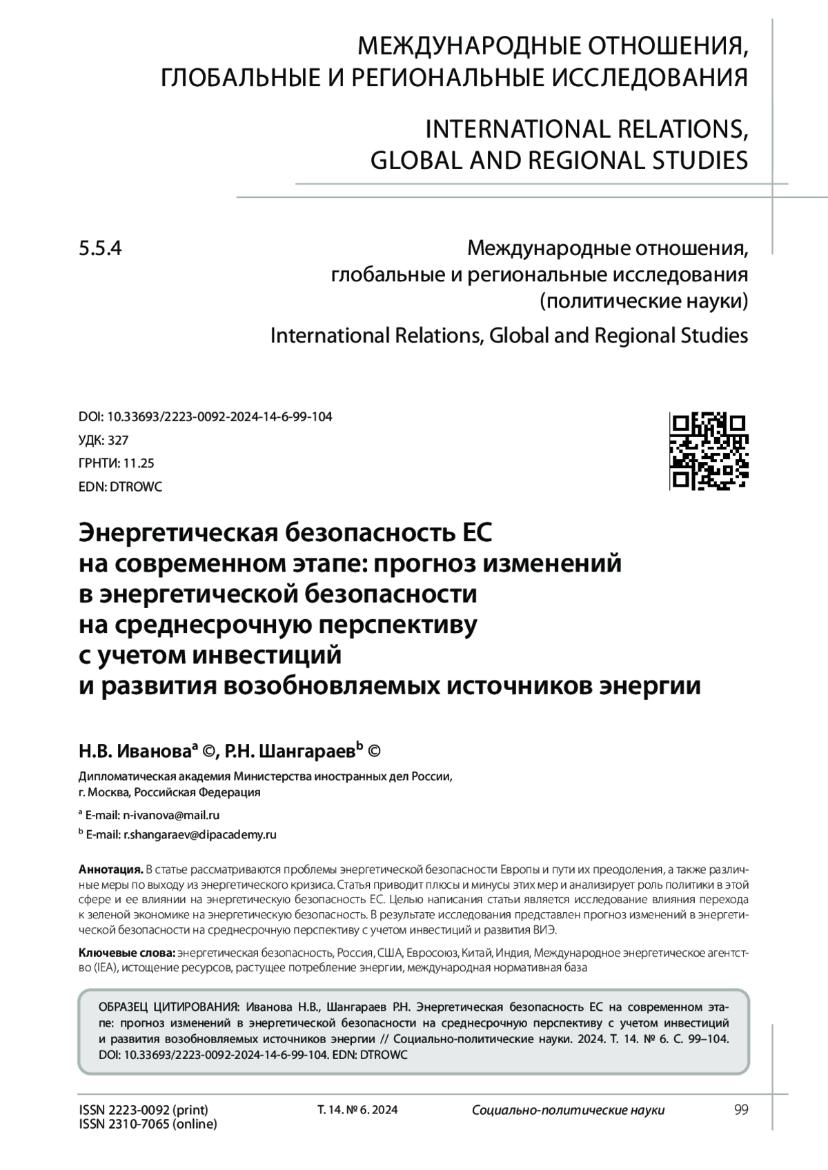 Shangaraev R.N., Yakhmenev P.A. Energy factor in the context of national security of the Russian Federation. Diplomatic Service. 2016. No. 5. Pp. 31-37. (In Rus.). EDN: XBDGJR