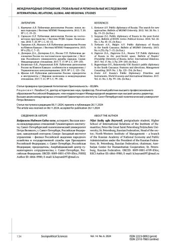 2. Саркисян О.Л. Публичная дипломатия России на постсоветском пространстве // Вестник РУДН. Серия: Политология. 2018. Т. 20. № 1. С. 45-55.