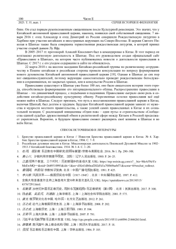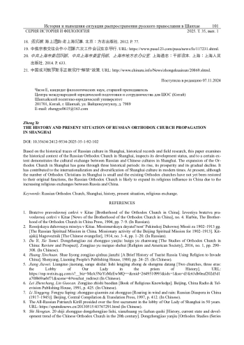 ЧЖЭН Е. ИСТОРИЯ И НЫНЕШНЯЯ СИТУАЦИЯ РАСПРОСТРАНЕНИЯ РУССКОГО ПРАВОСЛАВИЯ В ШАНХАЕ // ВЕСТНИК УДМУРТСКОГО УНИВЕРСИТЕТА. СЕРИЯ: ИСТОРИЯ И ФИЛОЛОГИЯ. 2025. Т. 35 № 1