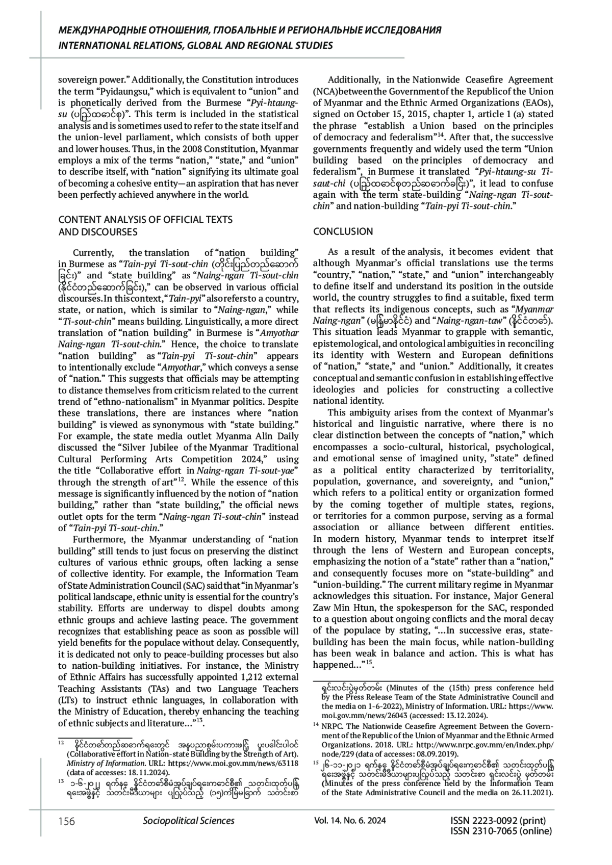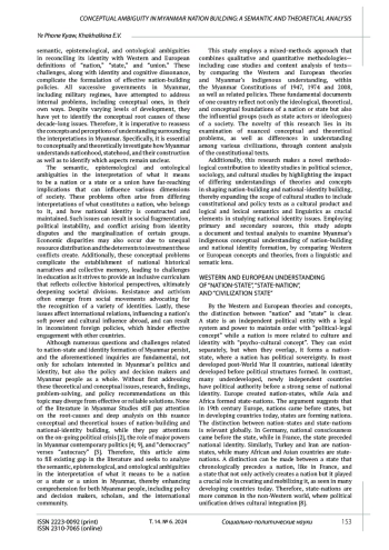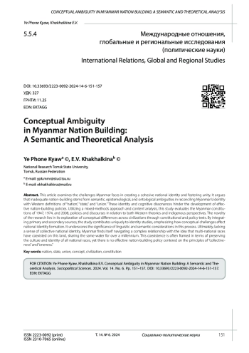 Статья: КОНЦЕПТУАЛЬНОЕ ПРОТИВОРЕЧИЕ В ГОСУДАРСТВЕННОМ СТРОИТЕЛЬСТВЕ МЬЯНМЫ: СМЫСЛОВОЙ И ТЕОРЕТИЧЕСКИЙ АНАЛИЗ (2024)