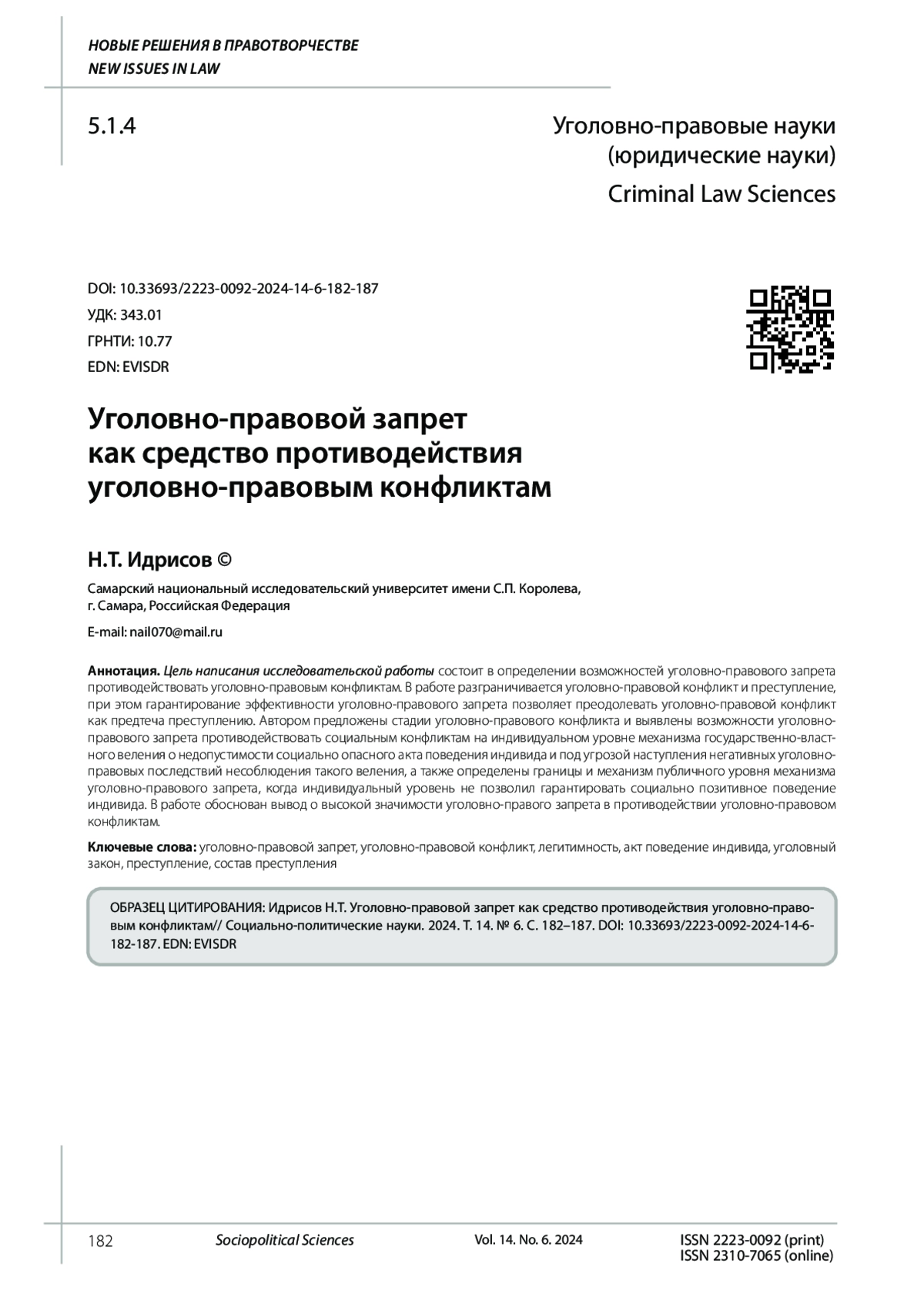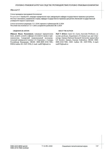12. Русанова О.В. О понятии уголовно-процессуальный конфликтов // Вестник ВГУ. Серия: Право. 2015. № 3. EDN: VVSKVN