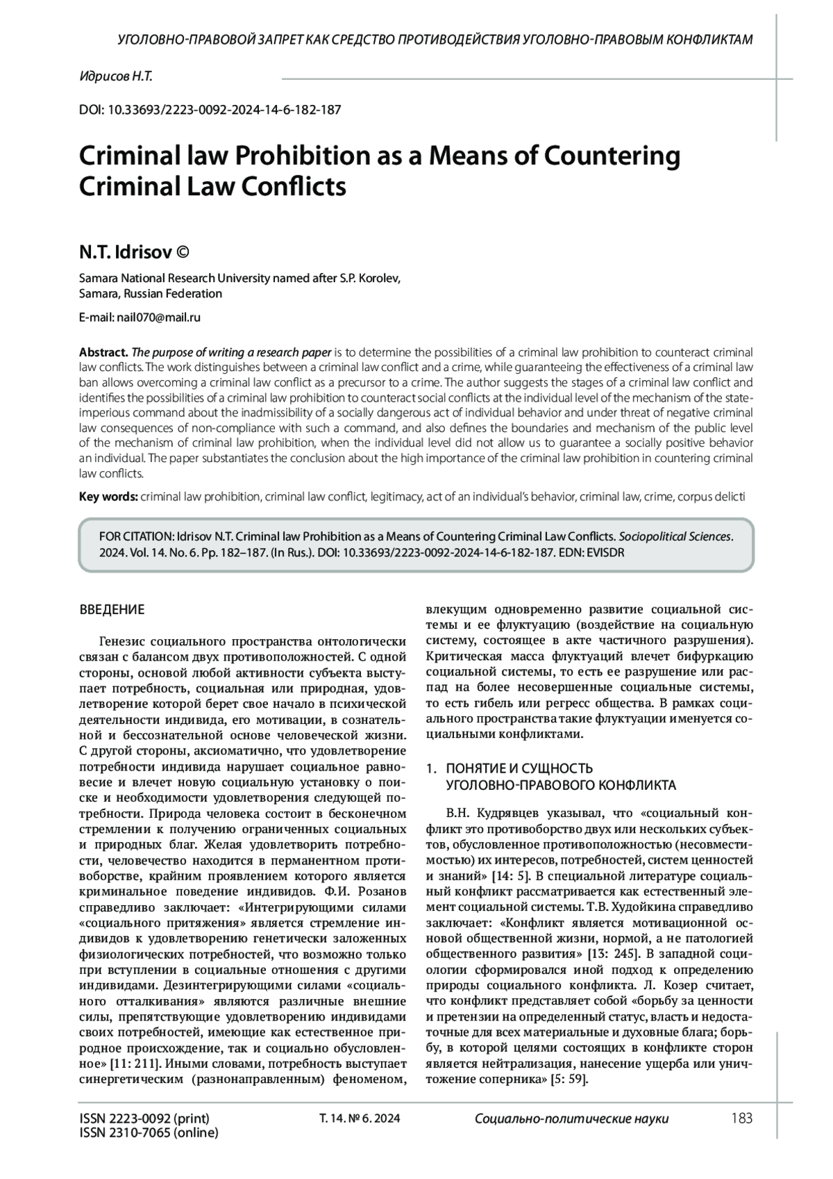 Legal conflict: Spheres and mechanisms. In: Legal conflictology. Part II. V.N. Kudryavtsev (ed.). Moscow, 1994.