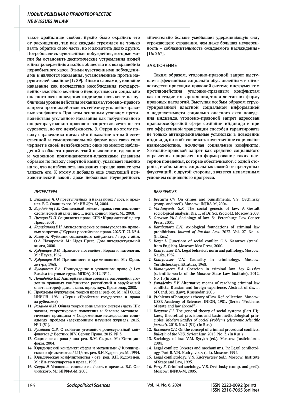 16. Ферри Э. Уголовная социология / сост. и предисл. В.С. Овчинского. М.: ИНФРА-М, 2005. EDN: QWIWVZ