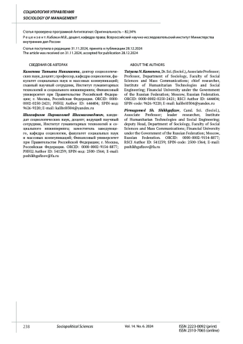 1. Анисимова Н.А., Кравченко В.О., Полежаева А.А. Влияние социально-трудовой сферы на формирование личностных компетенций молодых специалистов // Global and Regional Research. 2020. Т. 2. № 4. С. 111-116. EDN: RYDHMV