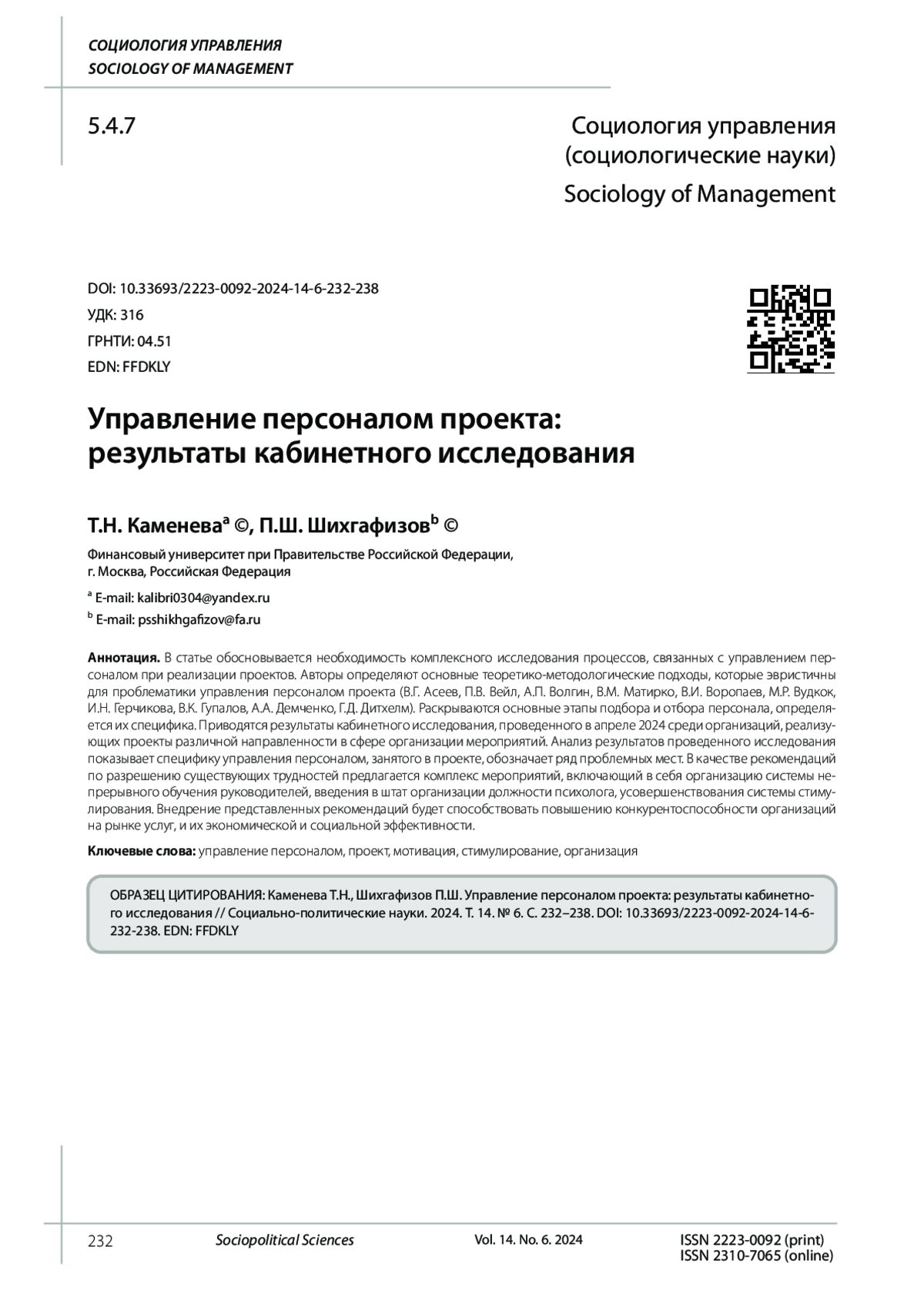 17. Романова М.М. Особенности управления персоналом при проектной организации деятельности // Вестник ОмГУ. Серия: Экономика. 2011. № 2. EDN: NXANVT