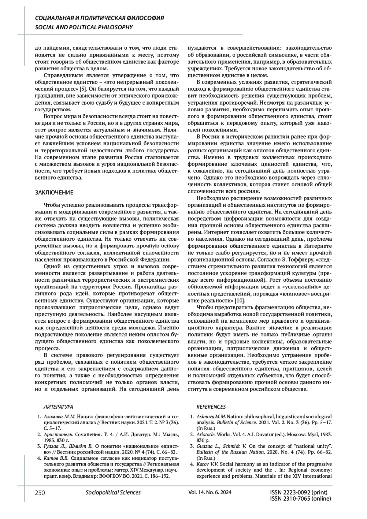 Ключевые фразы: общественное единство, народное единство, национальная идентичность, сплоченность, НАЦИОНАЛЬНАЯ ПОЛИТИКА, вызовы и противоречия, формирование народного единства