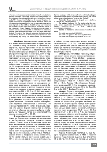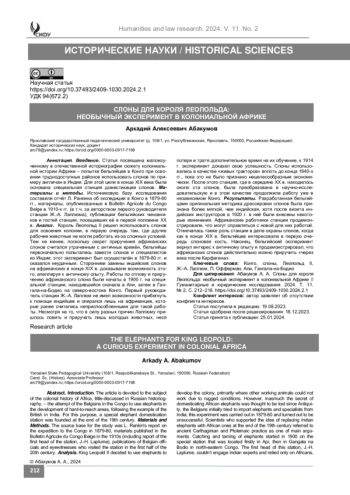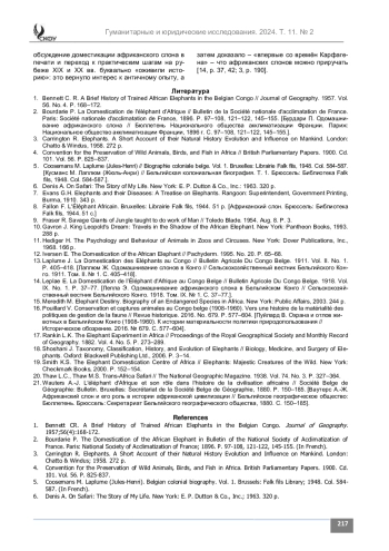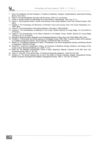 Введение. Статья посвящена малоизученному в отечественной историографии сюжету колониальной истории Африки – попытке бельгийцев в Конго при освоении труднодоступных районов использовать слонов по примеру англичан в Индии. Для этой цели в конце XIX века была основана специальная станция доместикации слонов.