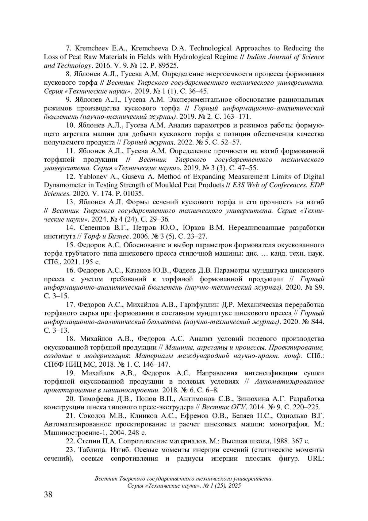 13. Яблонев А.Л. Формы сечений кускового торфа и его прочность на изгиб // Вестник Тверского государственного технического университета. Серия “Технические науки”. 2024. № 4 (24). С. 29-36. EDN: YIWYCA