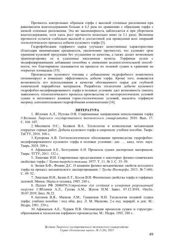Ключевые фразы: кусковой торф, формовочная влажность, топливо, гидрофобная добавка, прочность, технологические показатели