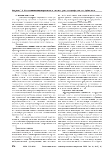 Статья: Исследование сформированности типов патриотизма у обучающихся Кубанского государственного университета и Краснодарского университета МВД России (2025)