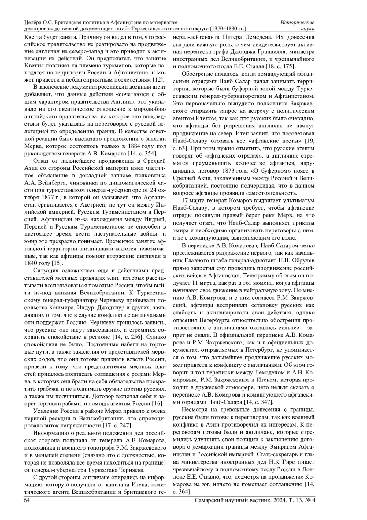 3. Целёра О.С. Особенности большой игры между Великобританией и Россией в XIX веке // История и археология. 2014. № 12 (20). С. 8-11. EDN: TFNLTH