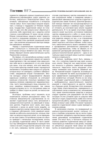 2. Вилкова К. А. Что мы знаем о студенческих семьях: социологический анализ / К. А. Вилкова, И. А. Груздев, Е. А. Шмелева [и др.] // Высшее образование в России. - 2024. - № 7. - С. 67-83. EDN: MSDITN